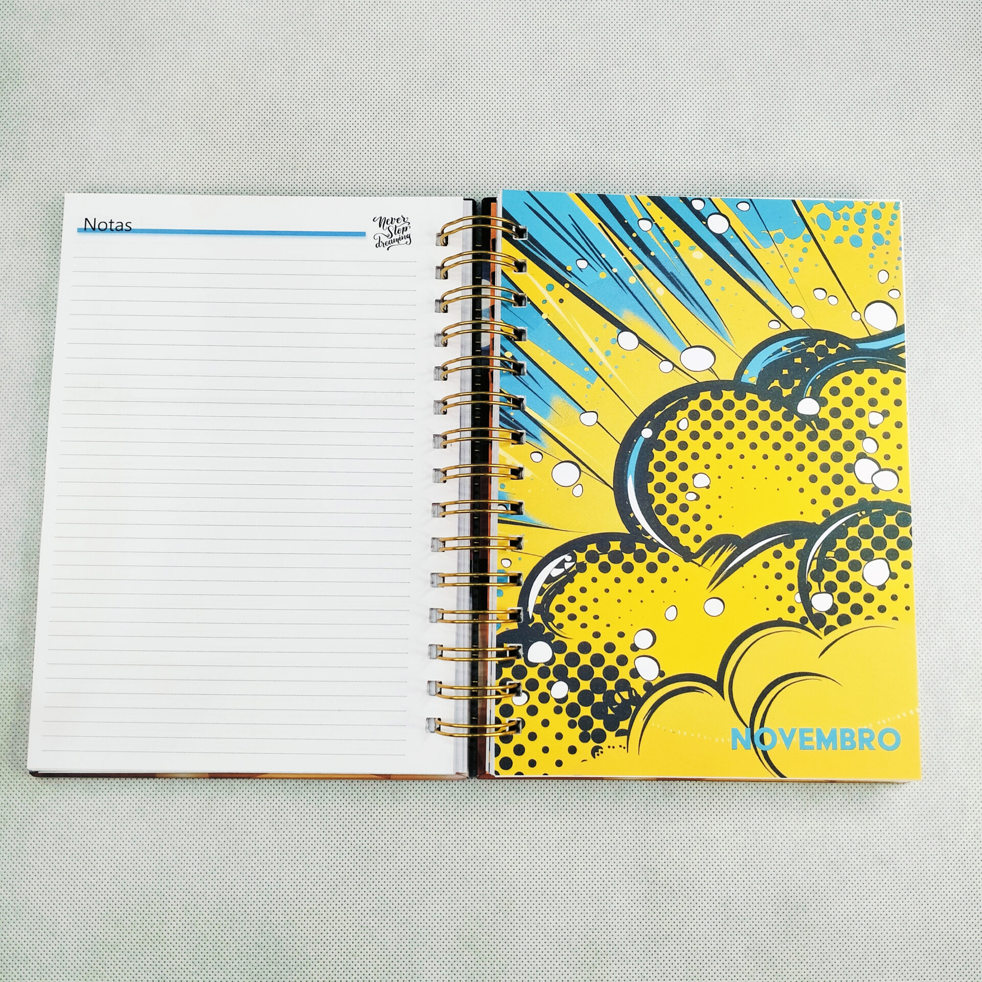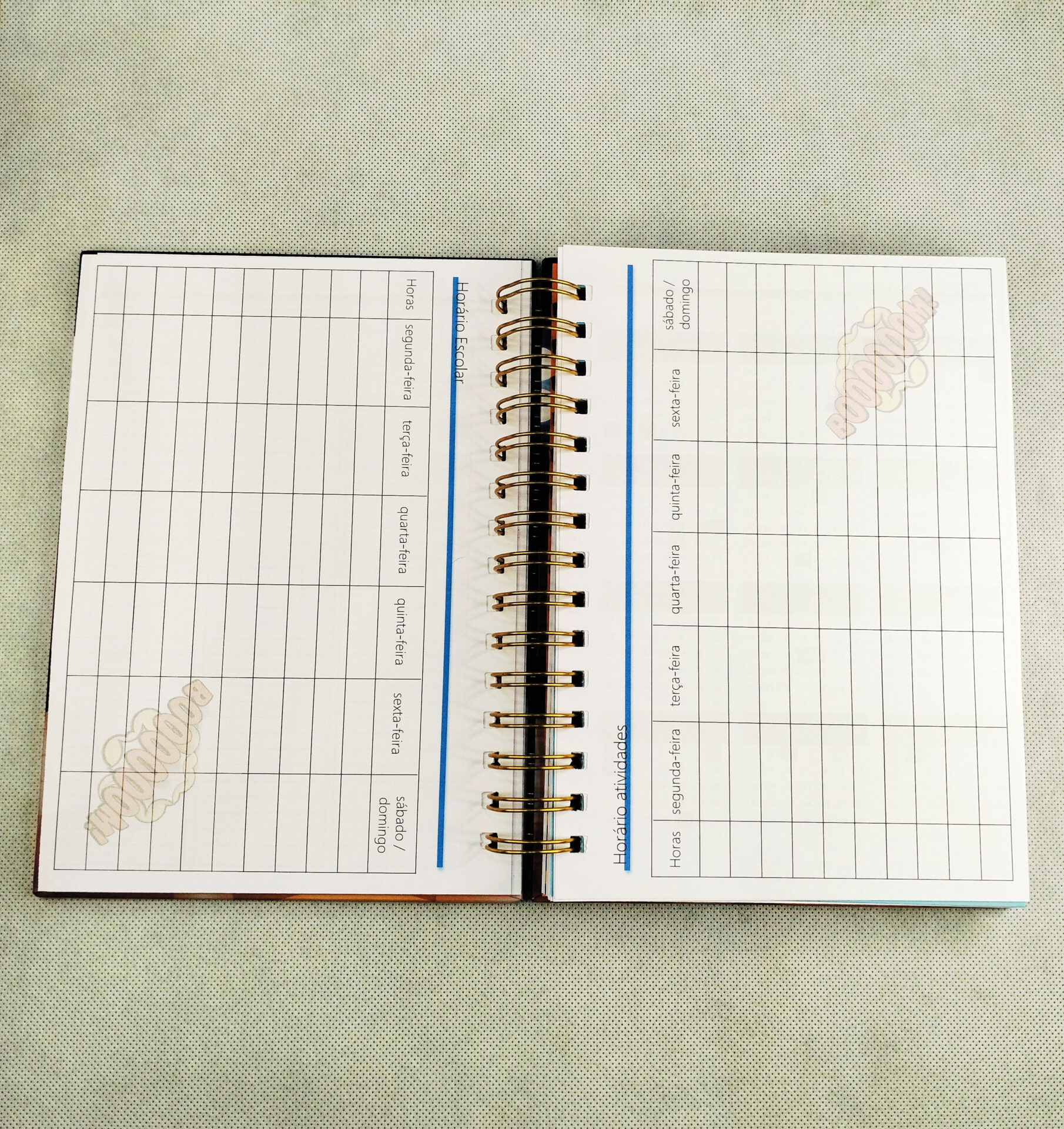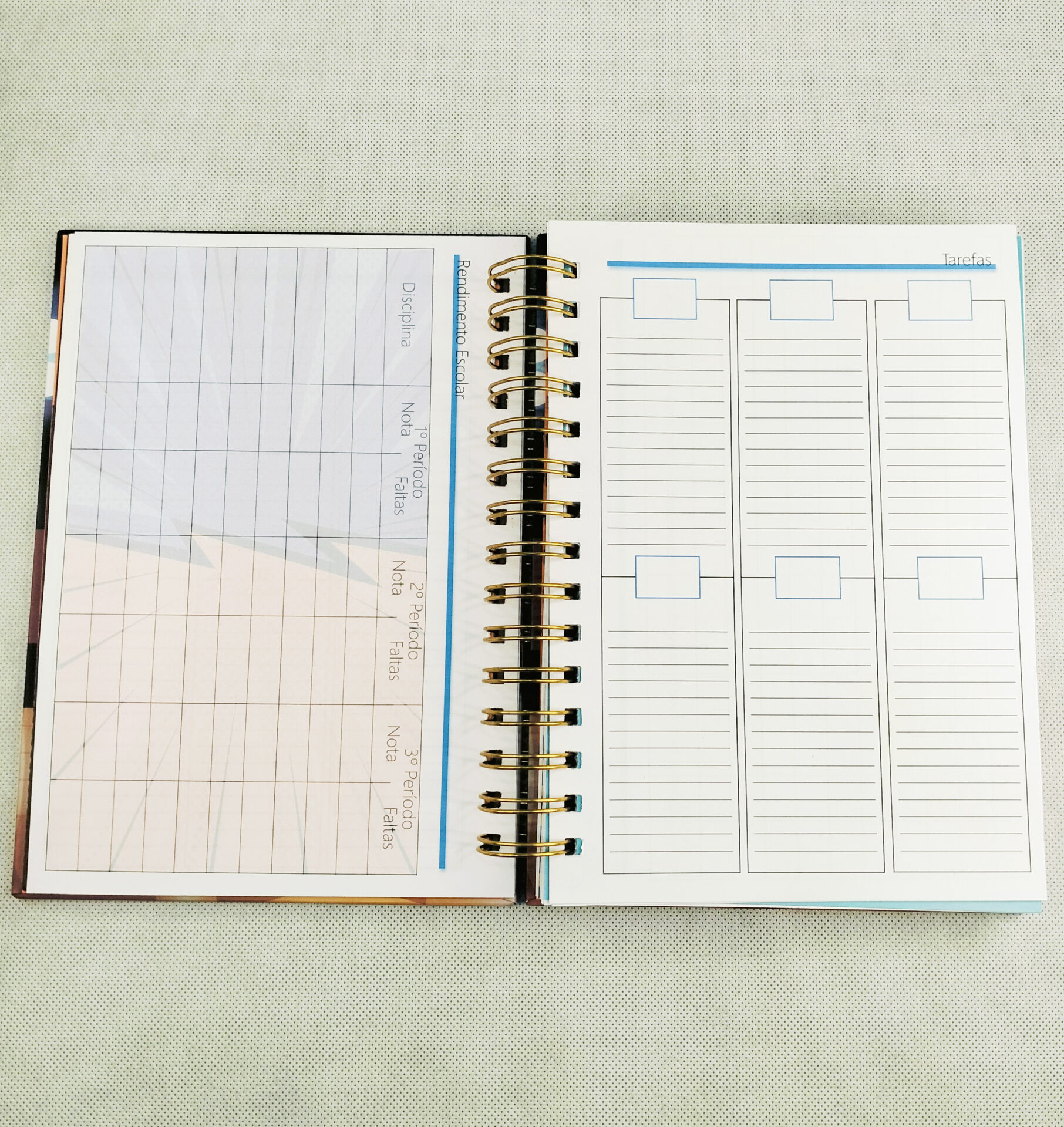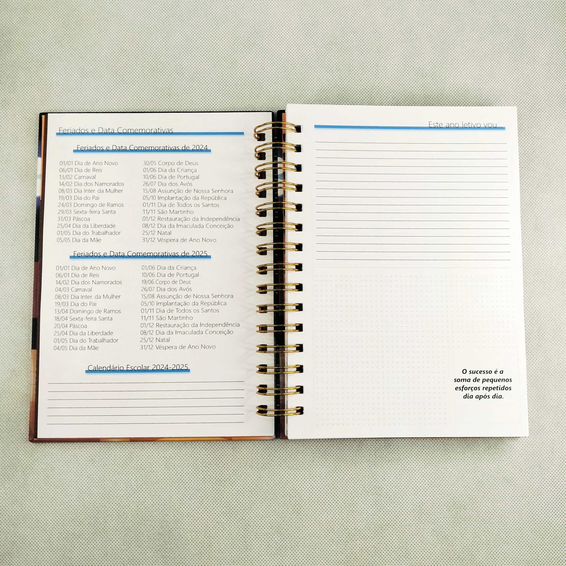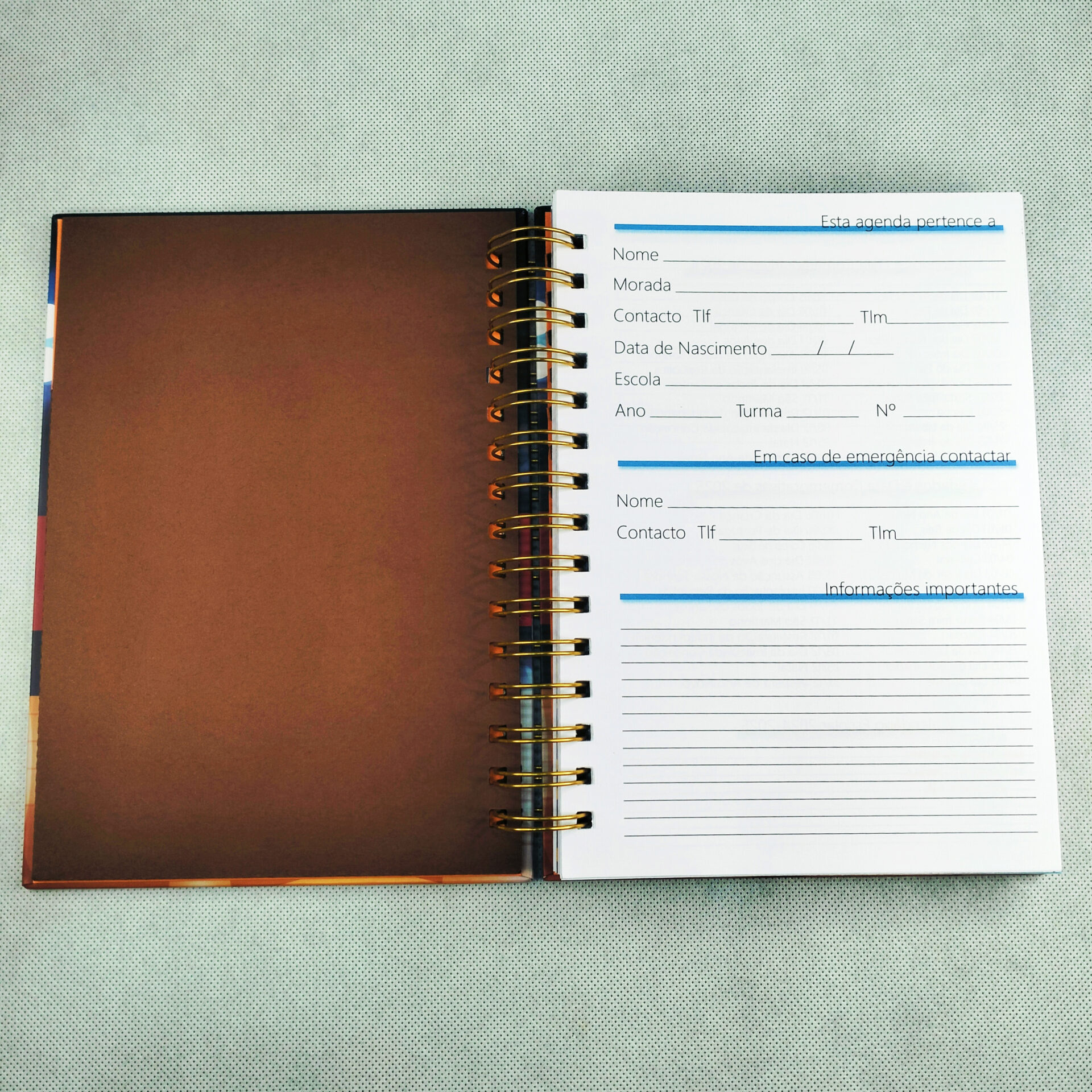 Agenda Escolar 2024-2025 com Capa Personalizável com interior em azul.