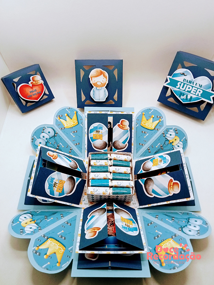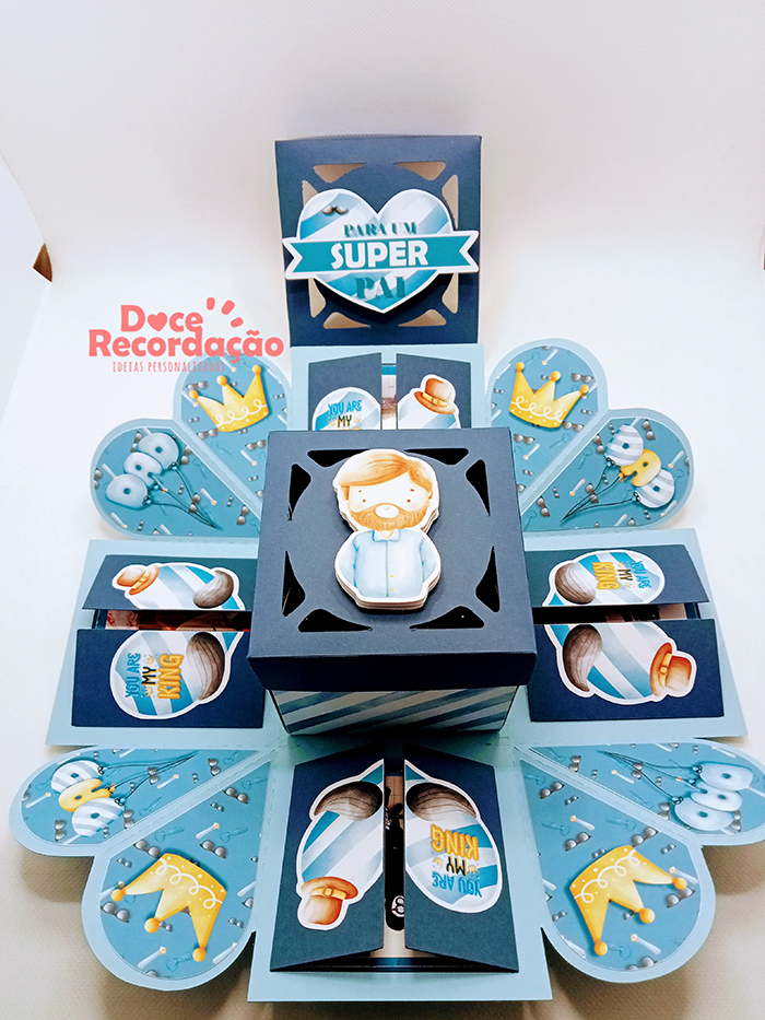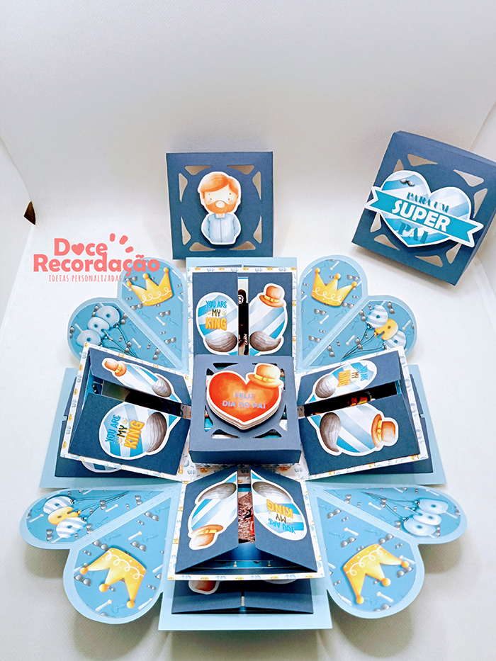 Caixa Surpresa Dia do Pai Personalizável com 8 fotografias e 12 napolitanas de chocolate de leite com mensagens para o Melhor Pai do Mundo!